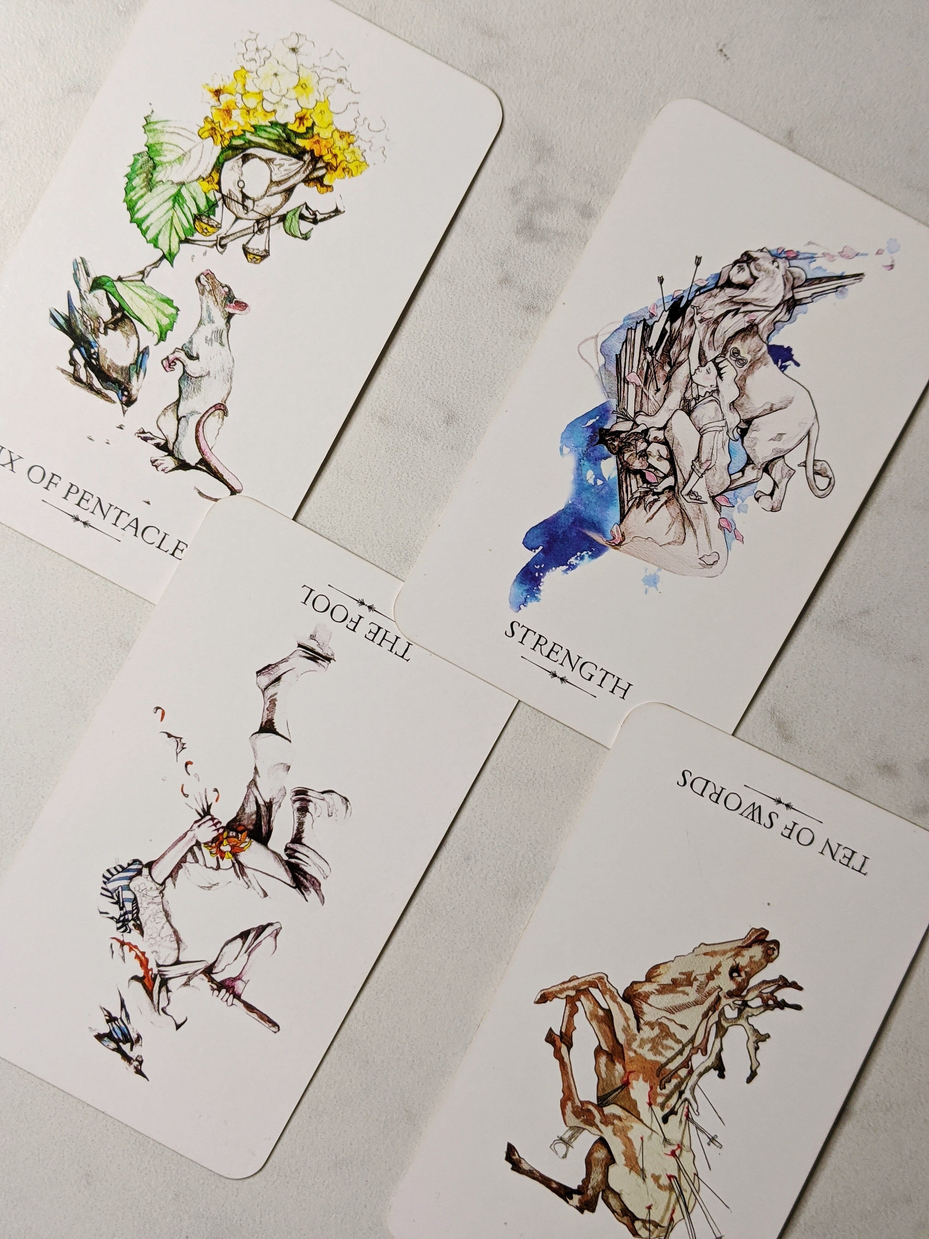 This was the first deck I ever bought myself, and I still absolutely love it. If you’re into video games, you might recognize the character on the Five of Swords card!